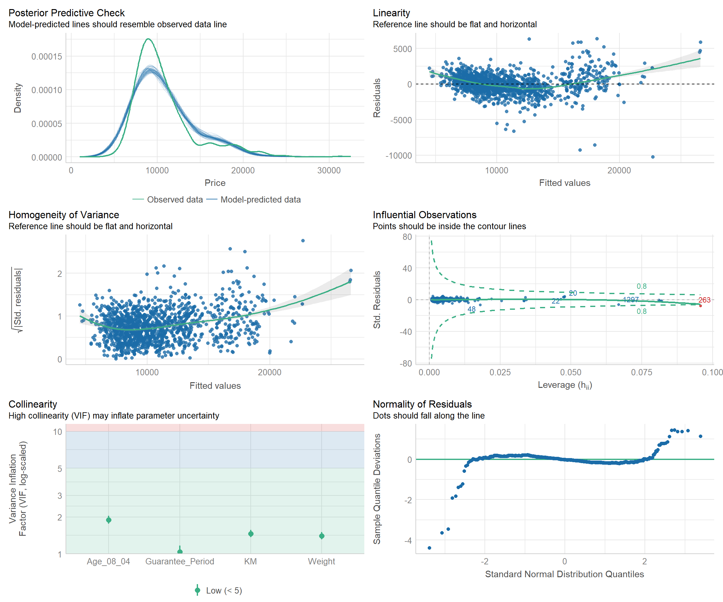 lm(formula = Price ~ Age_08_04 + Mfg_Year + KM + Weight + Guarantee_Period,