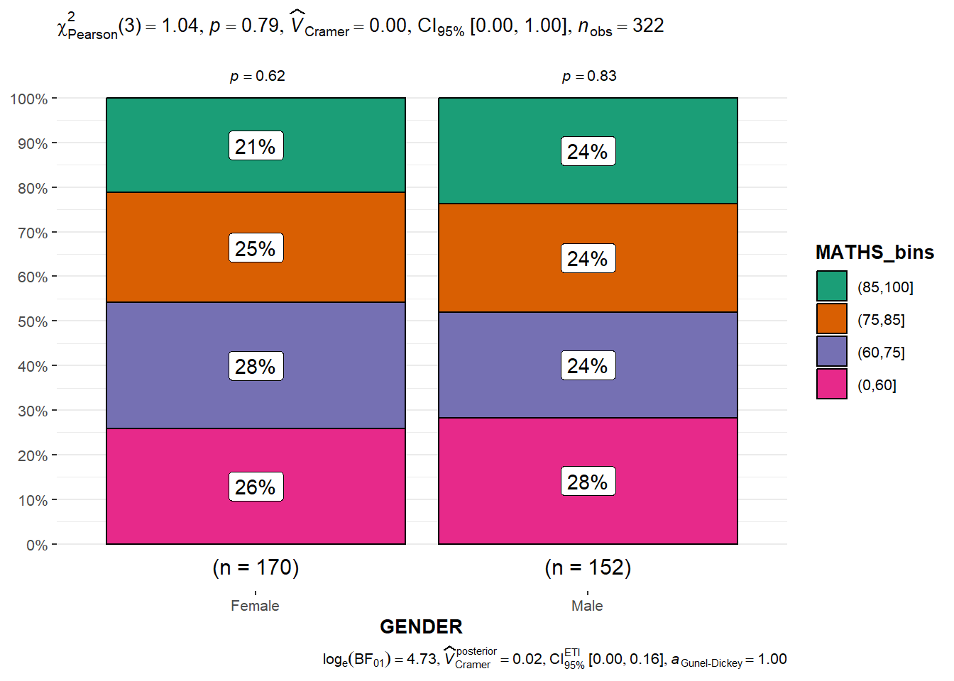For our data, we will first bin the Math scores into a 4-class variable using cut()